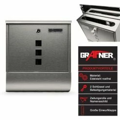 Grafner® Edelstahl Briefkasten Mit Zeitungsrolle Und 3 Sichtfenstern + Namensschild Postkasten