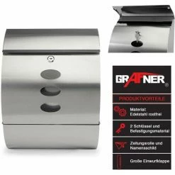 Grafner® Edelstahl Briefkasten Mit Zeitungsrolle Und 3 Sichtfenstern Postkasten