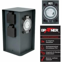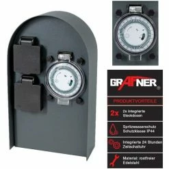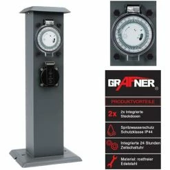 Grafner® Edelstahl Steckdosensäule Mit Timer 2 Außensteckdosen Anthrazit Gartensteckdose