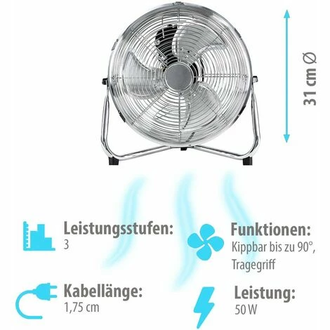 1x Grafner® Bodenventilator 31 cm inkl. Netzkabel und Standfüße