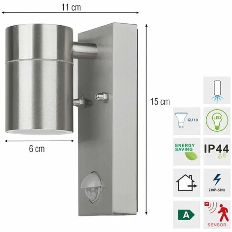 Lieferumfang: 1x Grafner Edelstahl Wandlampe mit Bewegungsmelder