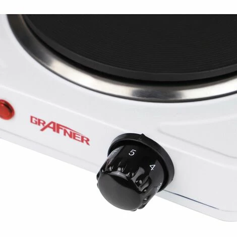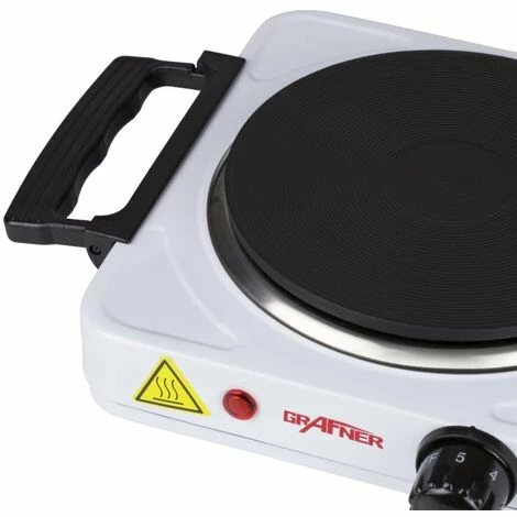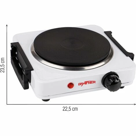 Das Kochfeld ist mit einer strapazierfähigen gusseisernen Heizfläche ausgestattet, welche einen Durchmesser von ca. 15,5 cm hat. Die Kochplatte besitzt eine Leistung von 1000 Watt, verfügt über 5 Temperaturstufen, 4 rutschfesten Füße, eine Betriebskontrollleuchte und ist mit einem Überhitzungsschutz ausgestattet.