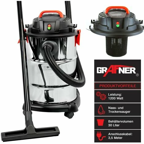 Der leistungsstarke Nass- und Trockensauger von der Marke Grafner ist ein vielseitiger Alleskönner und für die einfache Nass- und Trockenreinigung geeignet.