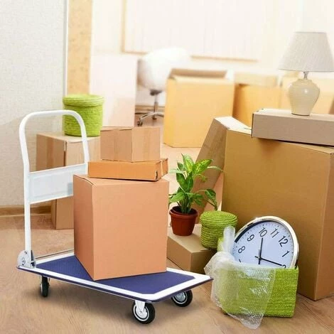Seine Stärken spielt der Transportwagen bei engen Platzverhältnissen aus. Zwei Lenkrollen sorgen für eine gute Wendigkeit. Um Schäden an umstehen Objekten zu vermeiden, besitzt der Plattformwagen einen gummierten Kantenschutz. Mit Hilfe des einklappbaren Griffs lässt er sich platzsparend verstauen. Ein geringes Eigengewicht garantiert einen einfachen Transport.