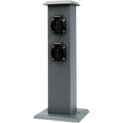 • DETAILS: Material: Edelstahl | Anschluss an 230V per in der Säule versenkbarer Verdrahtungsmöglichkeit | Anzahl Steckdosen: 4 | Farbe: anthrazit | max. Belastung: 3600 Watt | hochwertige Pulver-Beschichtung | Maße Säule: ca. 8 x 8 x 40, Maße Fuß: ca. 15,5 x 15,5 cm, Maße Dach: ca. 11 x 11 | Schutzklasse: IP44 | selbstschließende Klappdeckel | incl. Dübel und Schrauben zur schnellen Montage