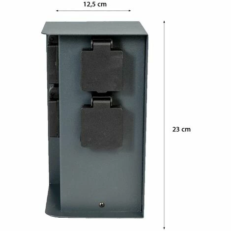 • DETAILS: Material: Edelstahl | Anschluss an 230V per in der Säule versenkbarer Verdrahtungsmöglichkeit | Anzahl Steckdosen: 4 | Farbe: anthrazit | hochwertige Pulver-Beschichtung | max. Belastung: 3600 Watt | Maße Breite: ca. 12,5 cm, Tiefe: ca. 12,5 cm , Höhe: ca. 23 cm | Schutzklasse: IP44 | selbstschließende Klappdeckel | incl. Dübel und Schrauben zur schnellen Montage