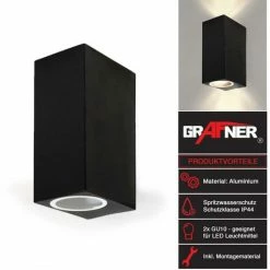 Grafner® Aluminium Wandlampe 37SQWB-2 Schwarz Wandleuchte Lichtschein Up&Down/Oben&Unten